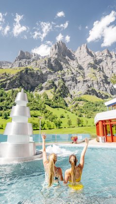 Im Schwimmbad Bella Tola, ein erfrischendes Bad darf nicht fehlen. Und wer sich Wellness in den Bergen gönnen will, für den bietet Leukerbad herrliche Wellness-Anlagen.